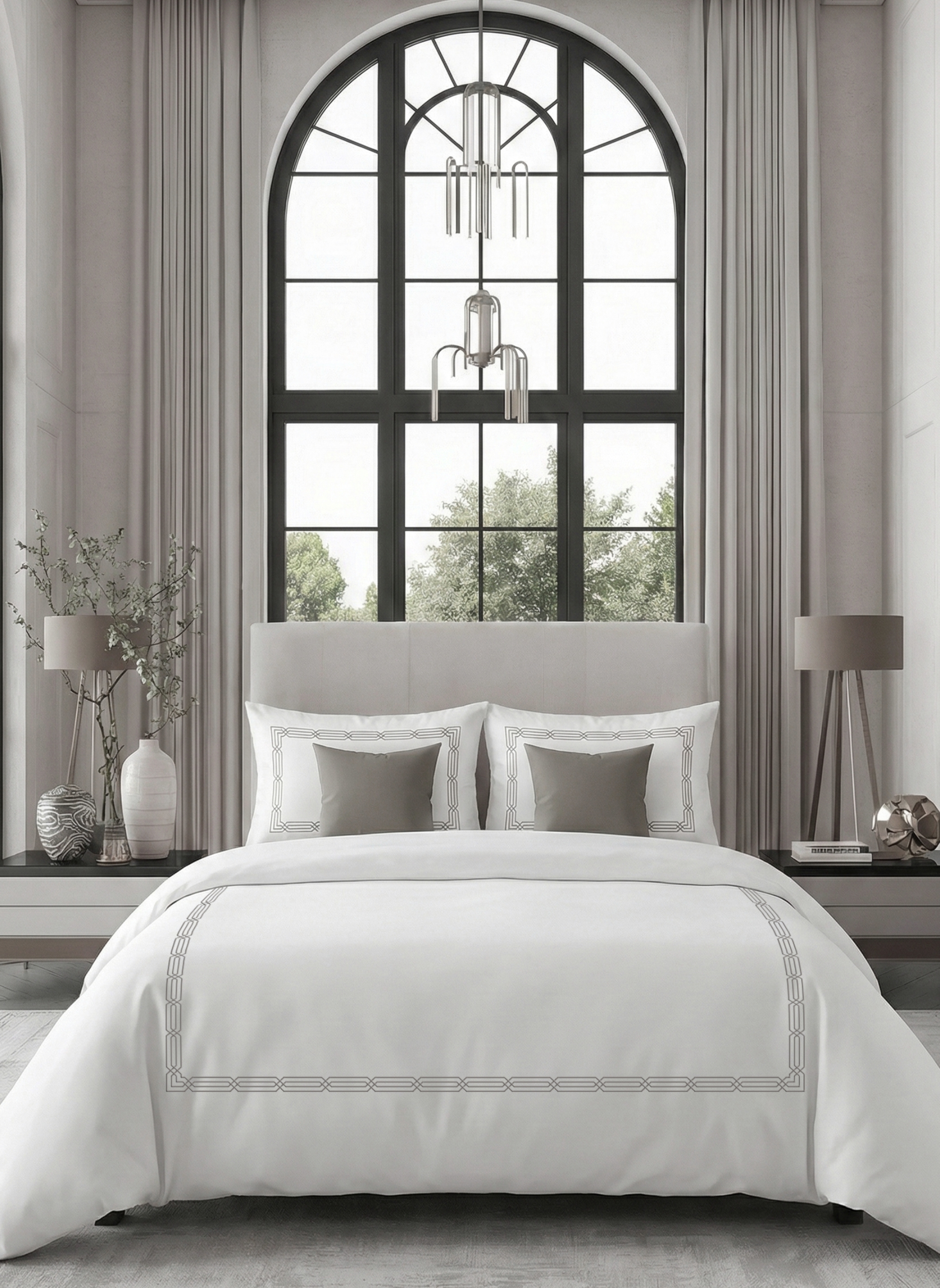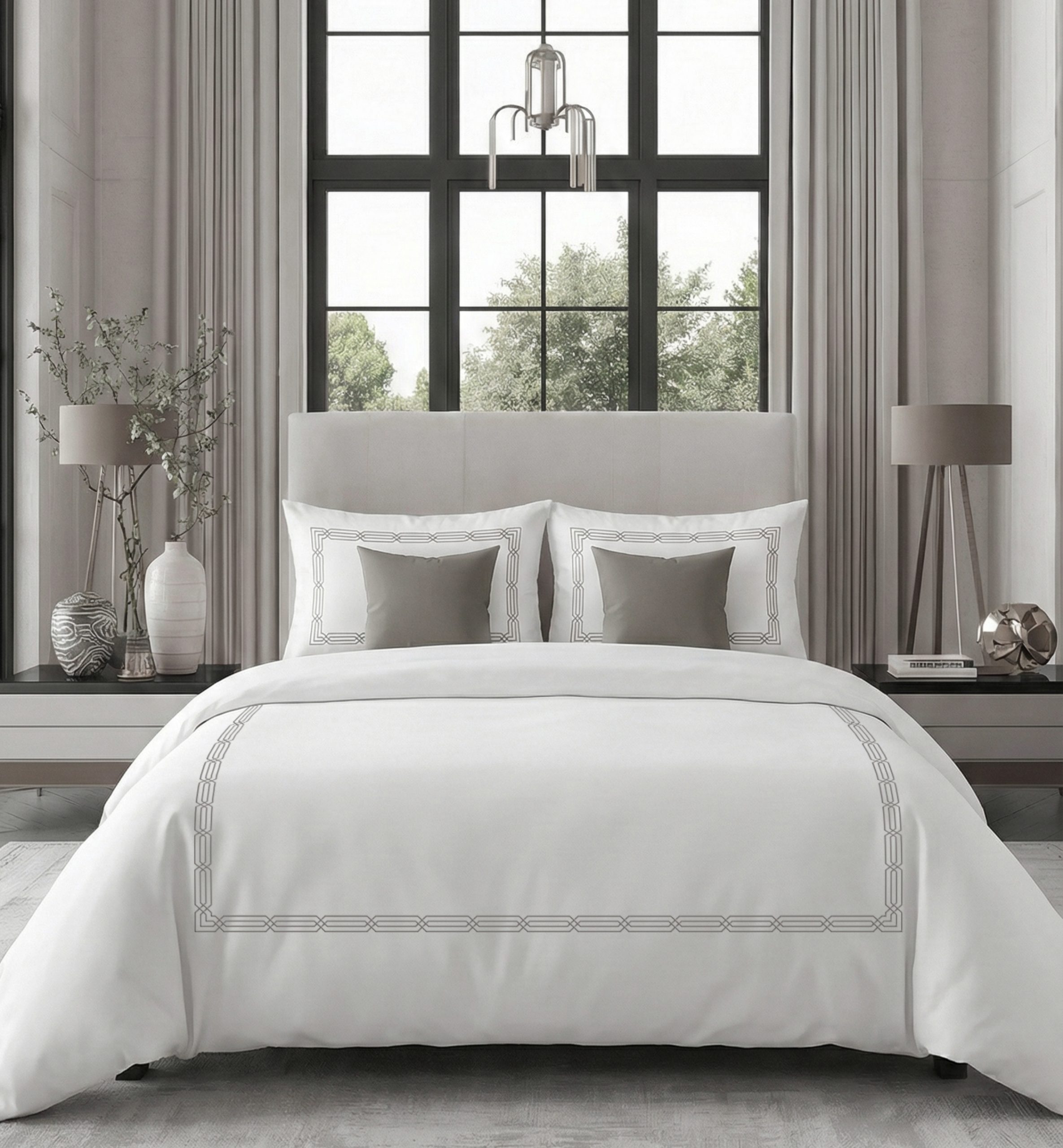 700 Thread Count Egyptian Cotton Satin Embroidered Bedding Set – Silver Grey