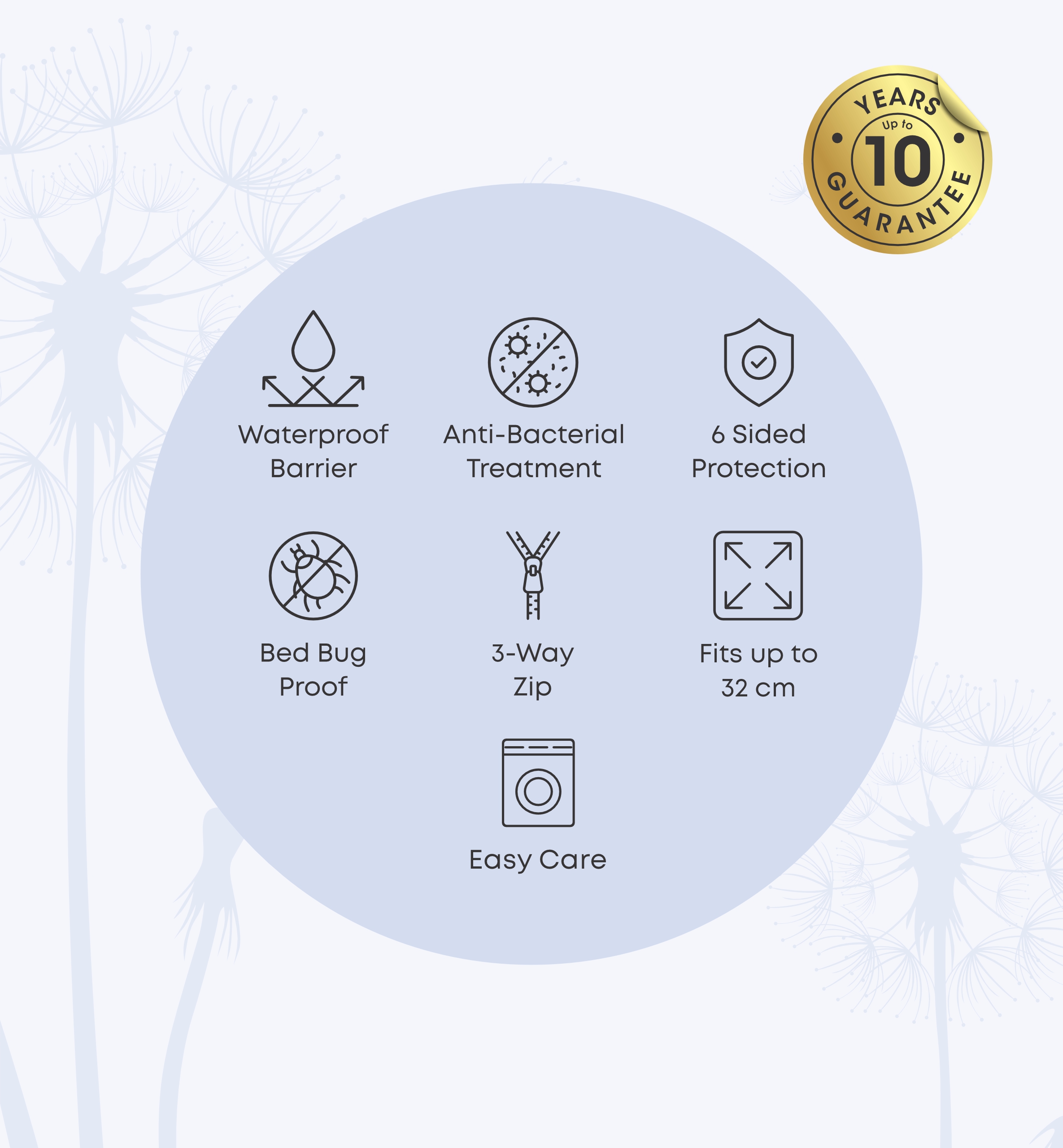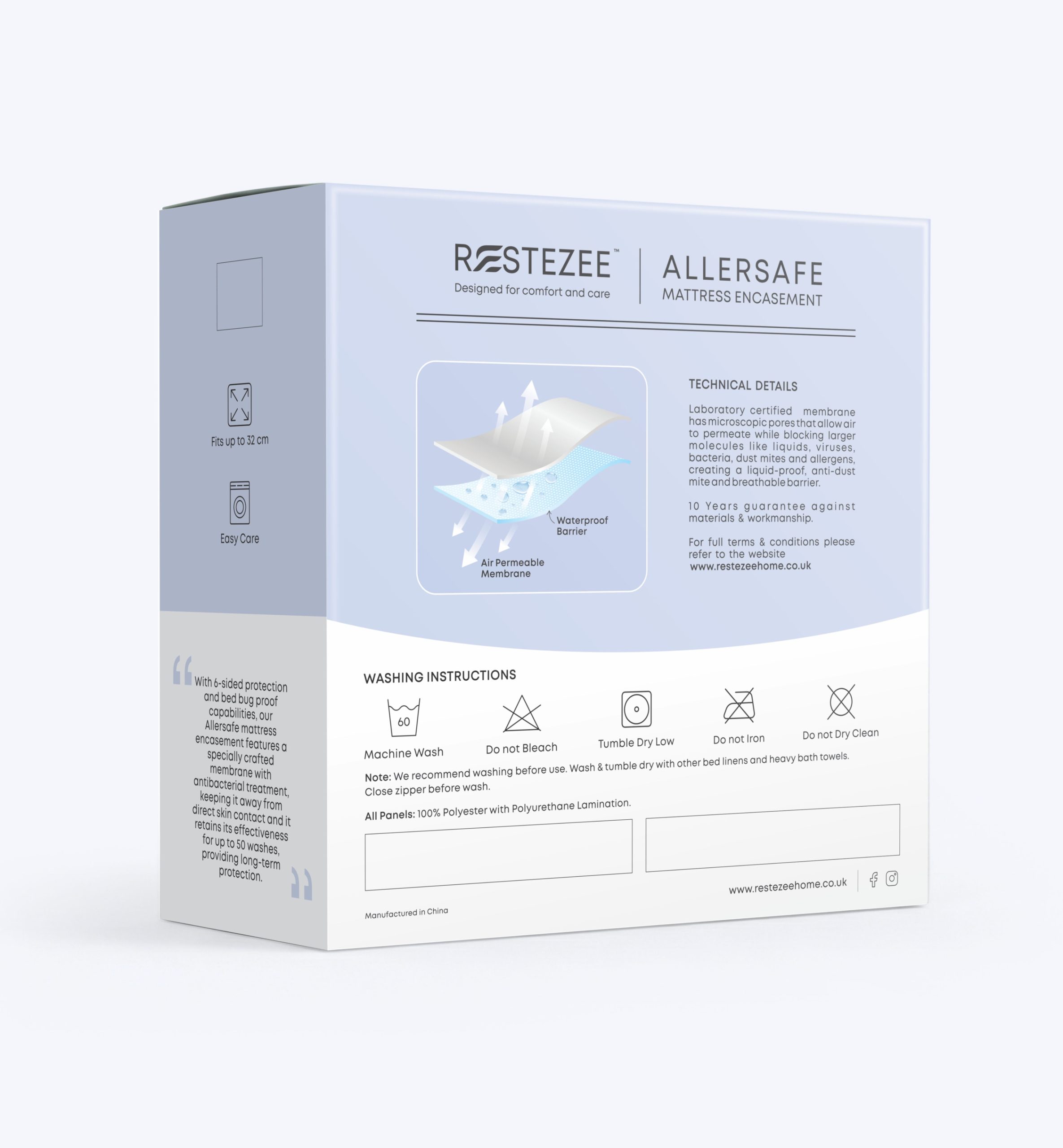 With 6-sided protection and bed bug proof capabilities, our Allersafe mattress encasement features a specially crafted membrane with antibacterial treatment, keeping it away from direct skin contact and it retains its effectiveness for up to 50 washes, providing long-term protection.