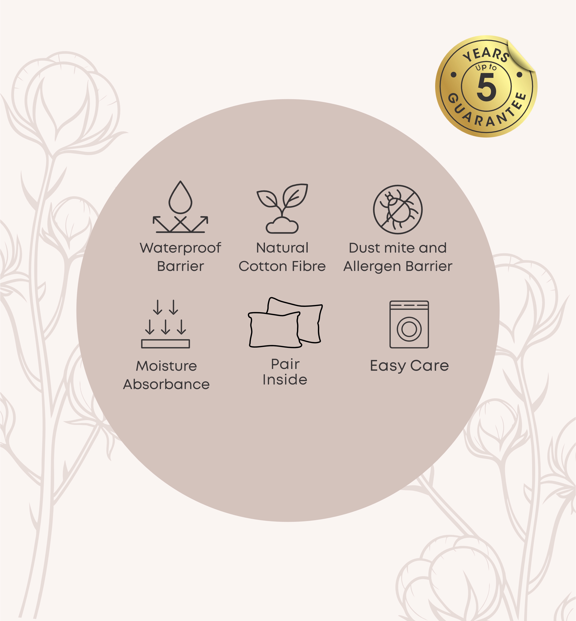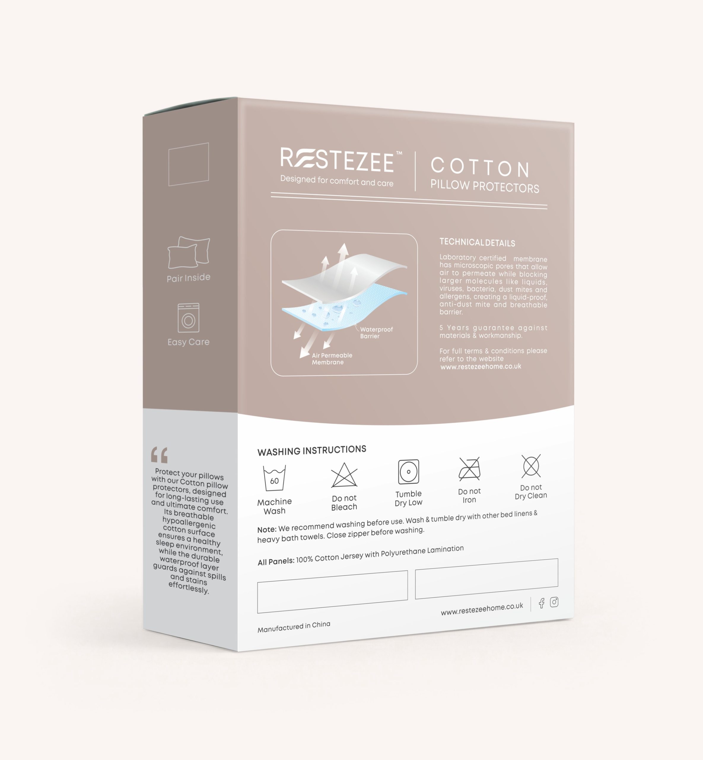 Protect your pillows with our Cotton pillow protectors, designed for long-lasting use and ultimate comfort. Its breathable hypoallergenic cotton surface ensures a healthy sleep environment, while the durable waterproof layer guards against spills